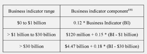 To arrive at the BIC, the Business Indicator is multiplied by what the Basel Committee describes as “a set of regulatory determined marginal coefficients,” such that the BIC increases with the size of the Business Indicator.